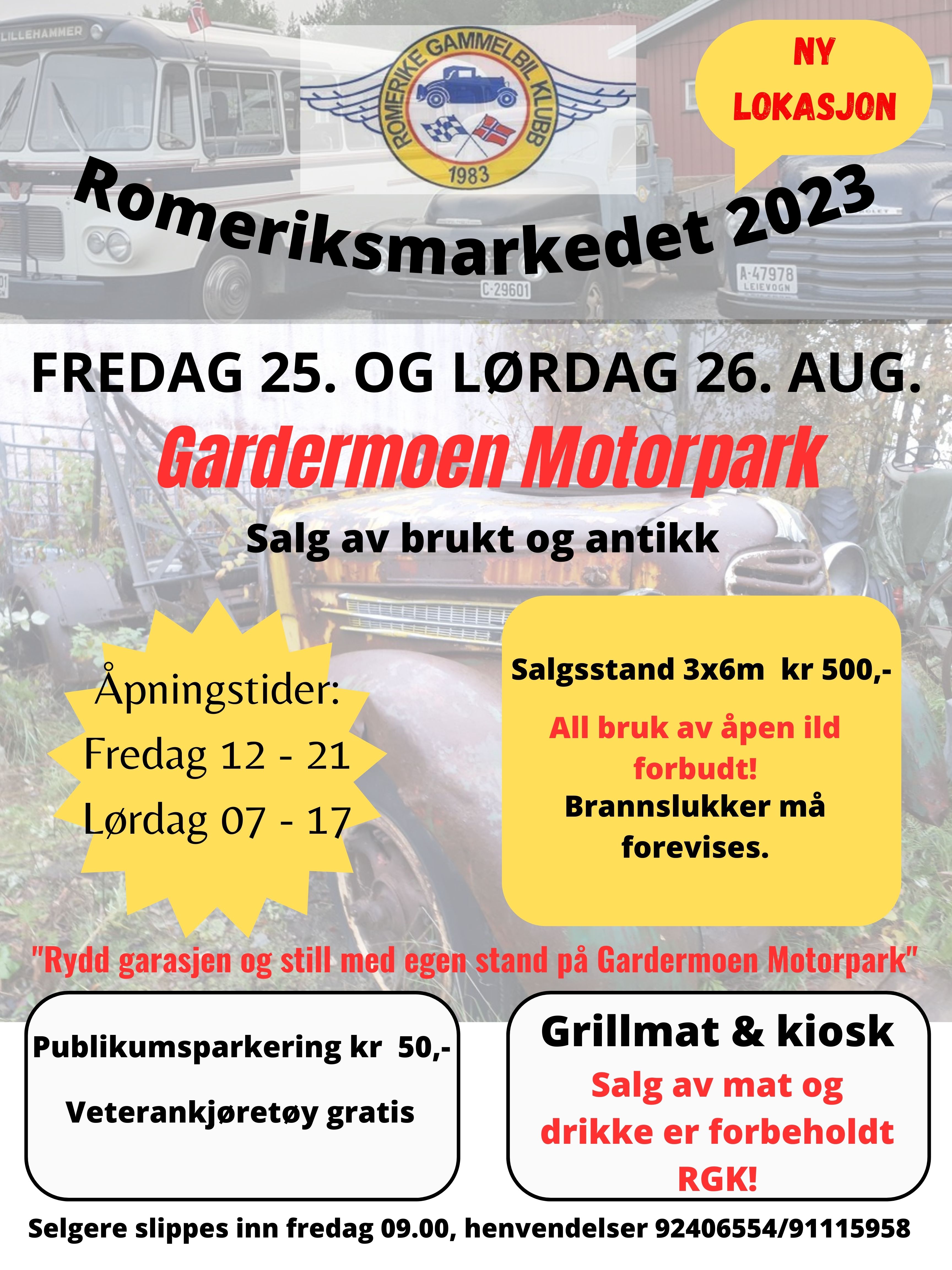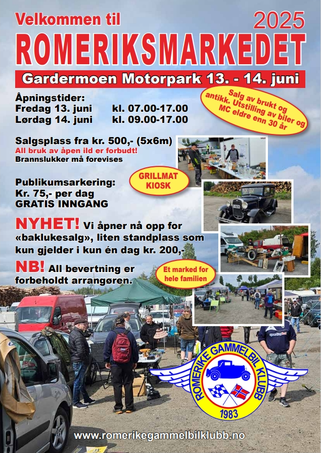 Velkommen til Romeriksmarkedet RGK 2026 ved Gardermoen Motorpark 5-6 juni 2026