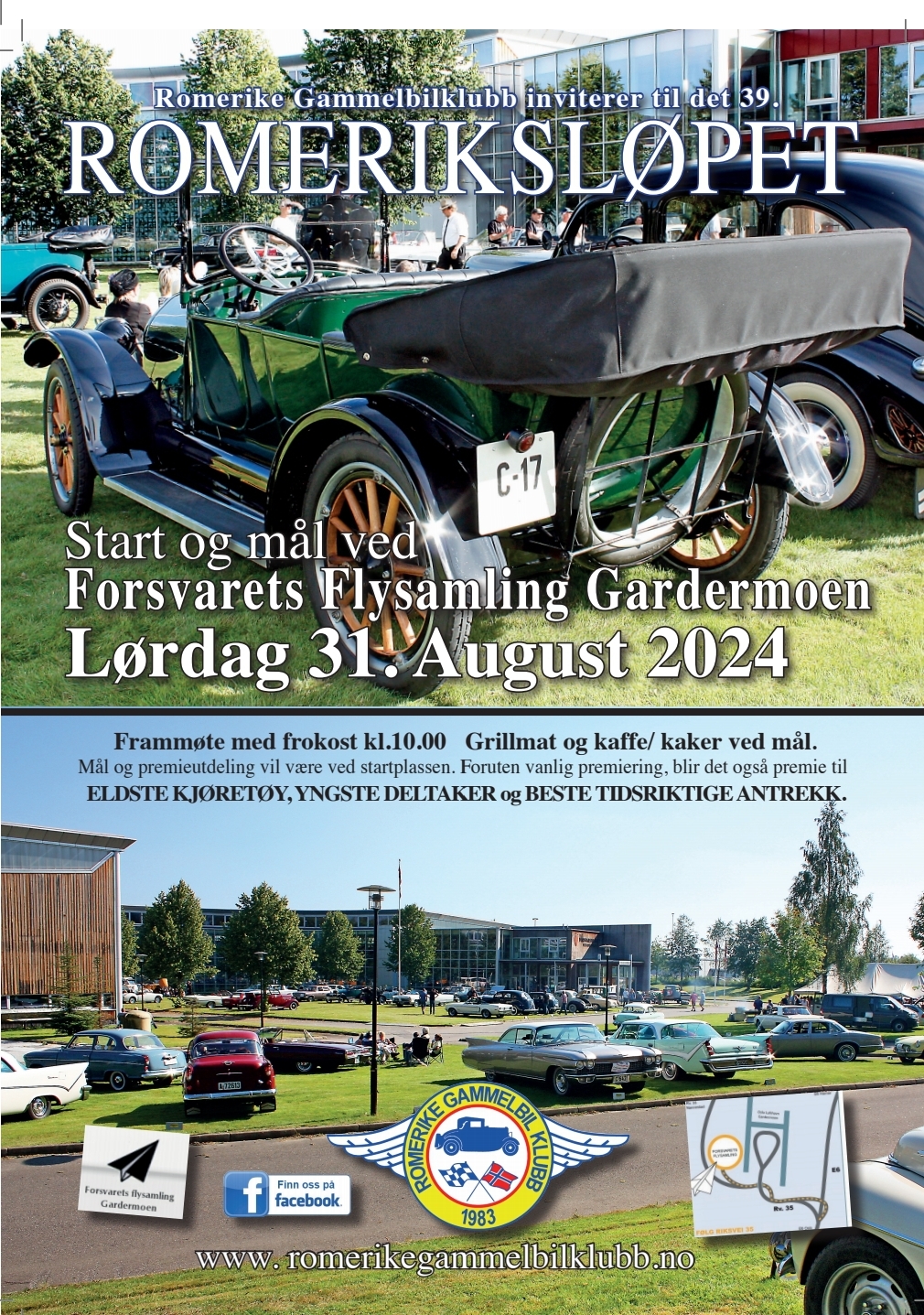 Romeriksløpet 2025 som arrangeres lørdag 30 august nærmer seg! Start og mål som tidligere år, fra Flysamlingen på Gardermoen. Det er nå åpnet for påmelding! Velkommen!